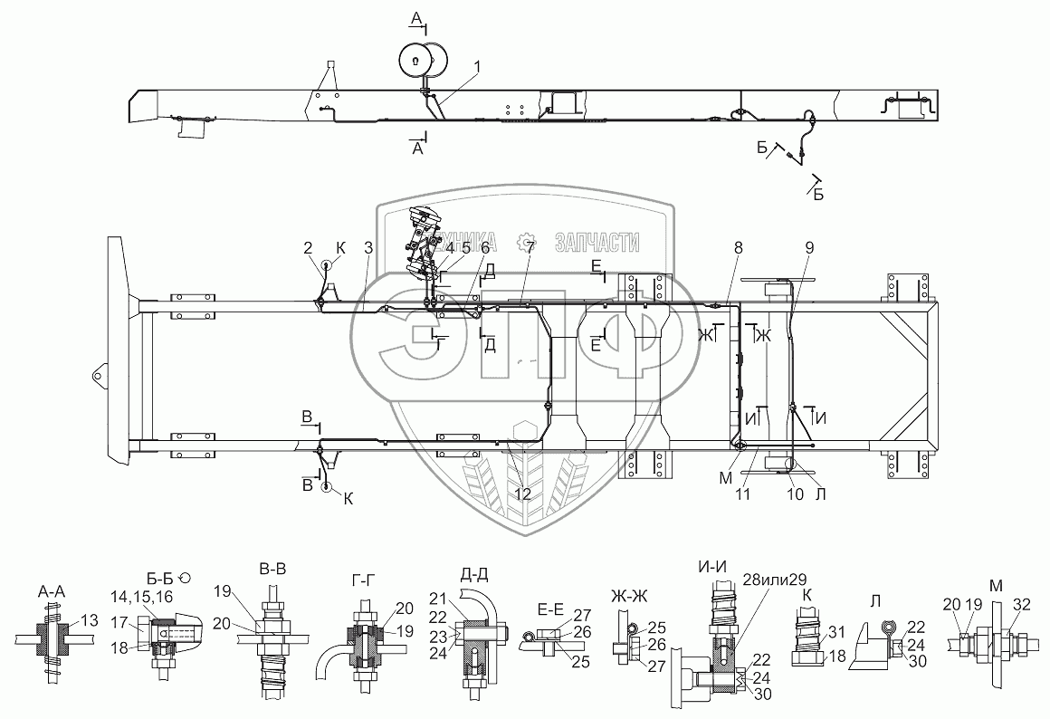 Каталог запасных частей к технике: МТЗ Ш-353М. Гидропривод тормозов Ш353М-3501000