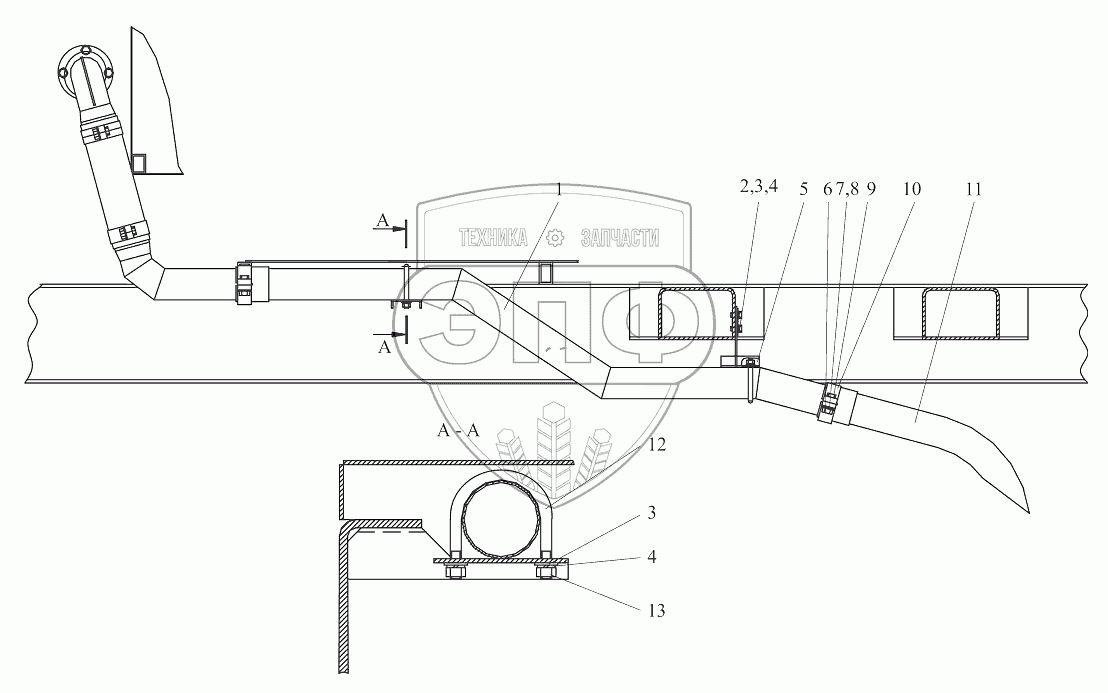 Каталог запасных частей к технике: МТЗ Ш-353М. Труба выпускная 373М-1203010