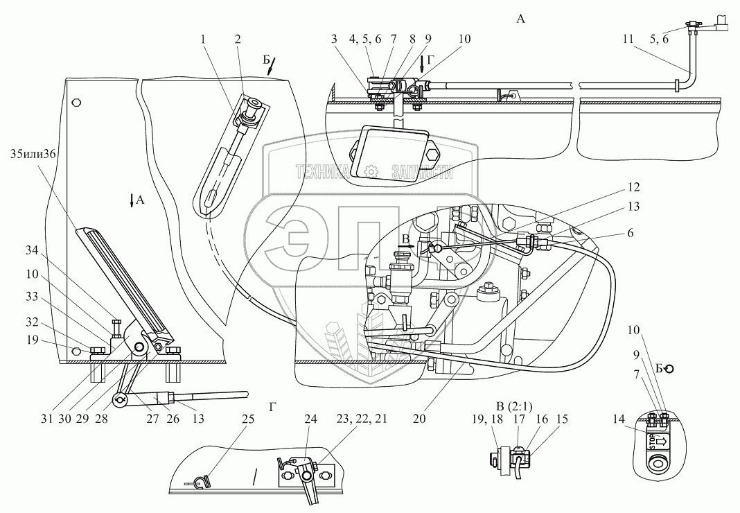 Каталог запасных частей к технике: МТЗ Ш-353М. Управление подачей топлива Ш353М-1108010