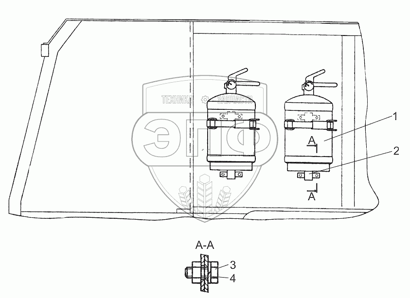 Каталог запасных частей к технике: МТЗ Ш-353М. Установка огнетушителя Ш353М-3910010-Б