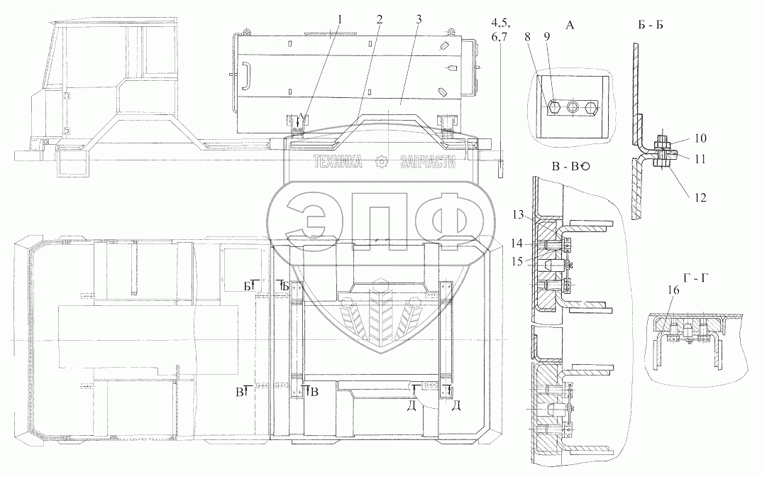 Каталог запасных частей к технике: МТЗ Ш-353М. Установка верхних строений 373М-2801000