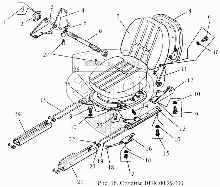 Каталог запасных частей к технике: МЗИК ДП-1604. Сиденье
