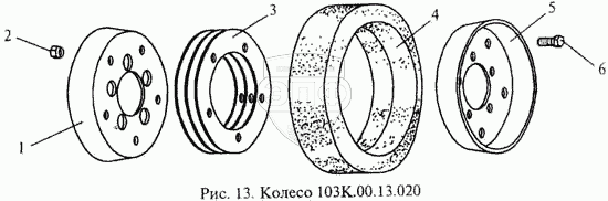 Каталог запасных частей к технике: МЗИК ЭП-103КО. Колесо 103К.00.13.020