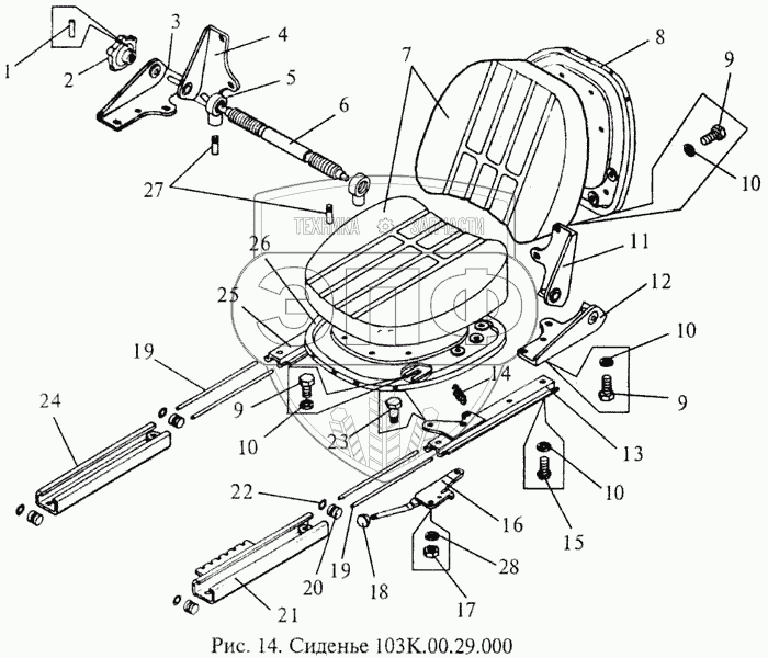 Каталог запасных частей к технике: МЗИК ЭП-103КО. Сиденье
