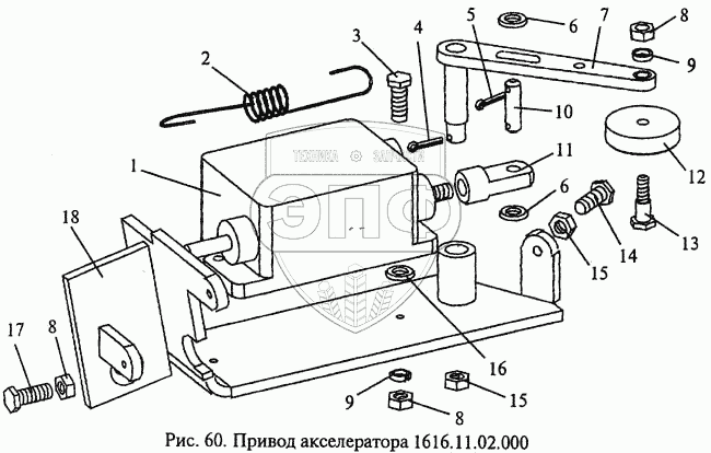 Каталог запасных частей к технике: МЗИК ЭП-1616. Привод акселератора