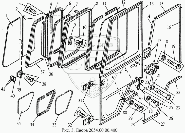 Каталог запасных частей к технике: МЗИК ЭТ-2054. Дверь 2054.0.00.400