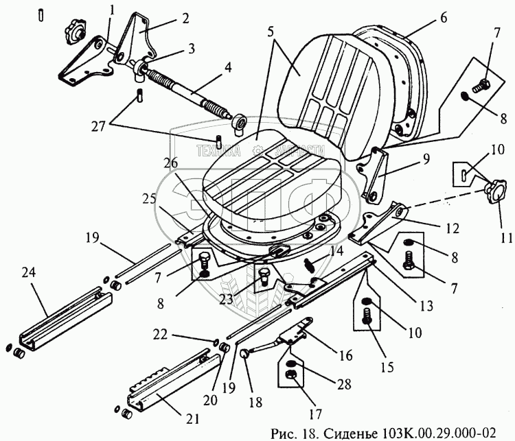 Каталог запасных частей к технике: МЗИК ЭТ-2054. Сиденье
