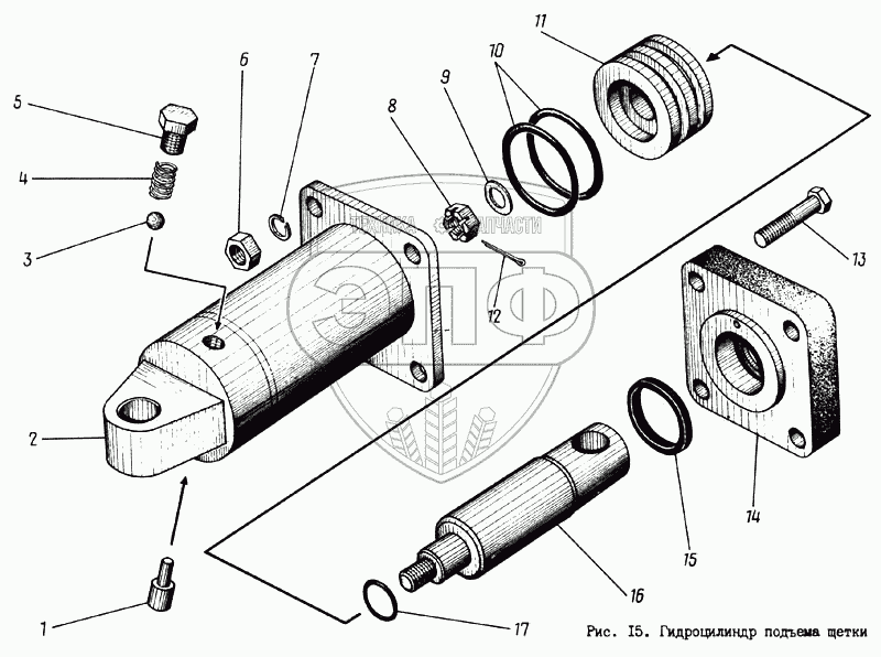 Каталог запасных частей к технике: МЗКМ КО-713. Гидроцилиндр подъема щетки