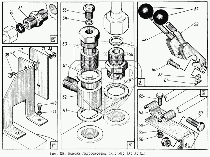 Каталог запасных частей к технике: МЗКМ КО-713. Монтаж гидросистемы
