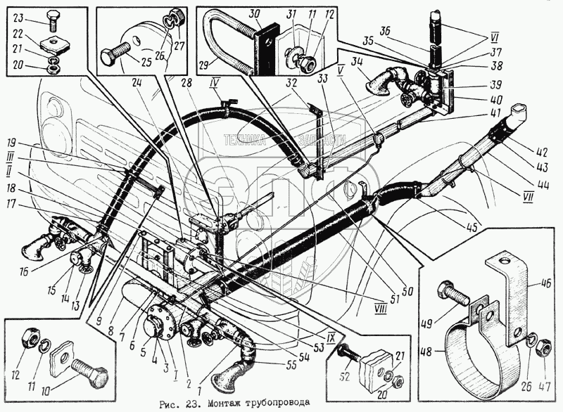 Каталог запасных частей к технике: МЗКМ КО-713. Монтаж трубопровода