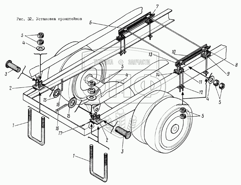 Каталог запасных частей к технике: МЗКМ КО-713. Установка кронштейнов