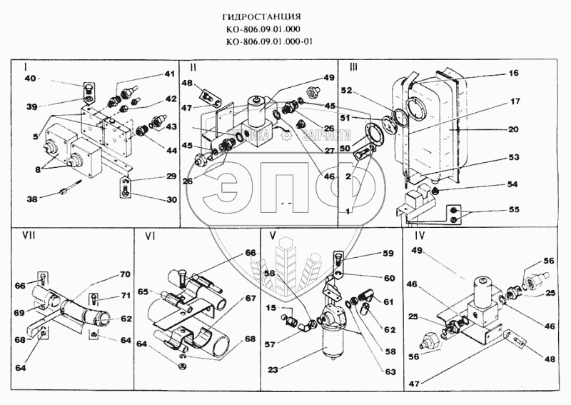 Каталог запасных частей к технике: МЗКМ КО-806. Гидростанция