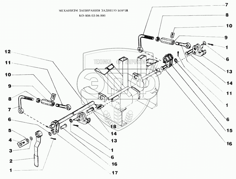 Каталог запасных частей к технике: МЗКМ КО-806. Механизм запирания заднего борта