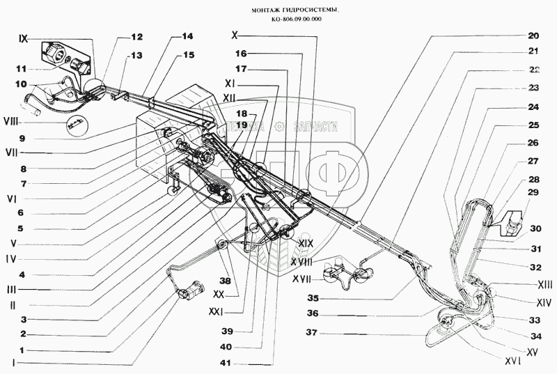 Каталог запасных частей к технике: МЗКМ КО-806. Монтаж гидросистемы