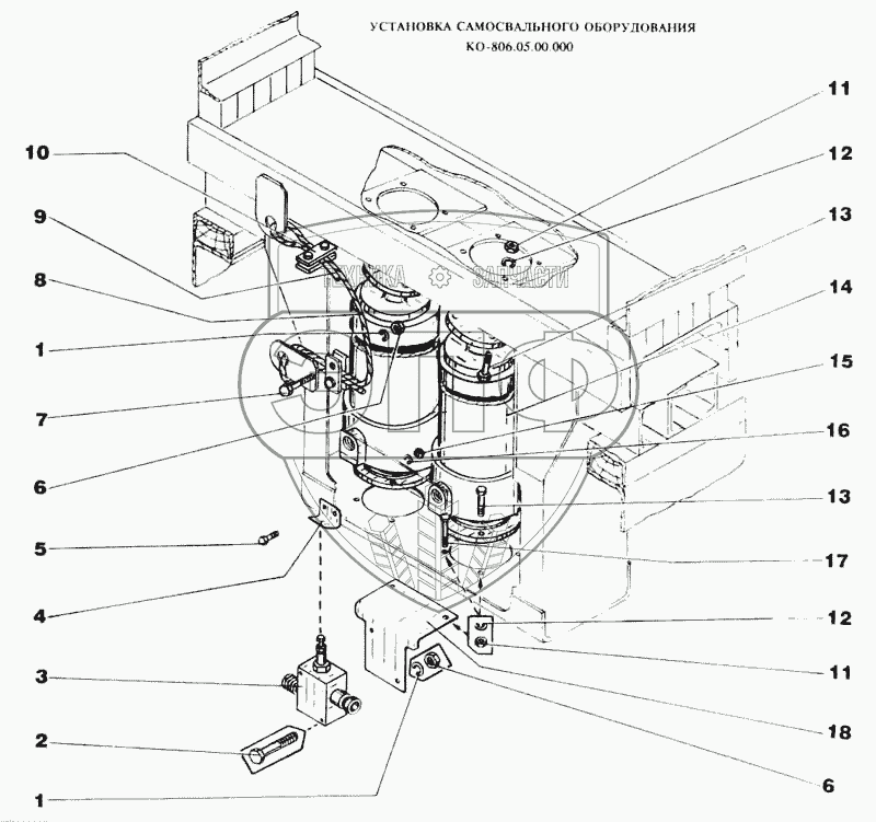 Каталог запасных частей к технике: МЗКМ КО-806. Установка самосвального оборудования