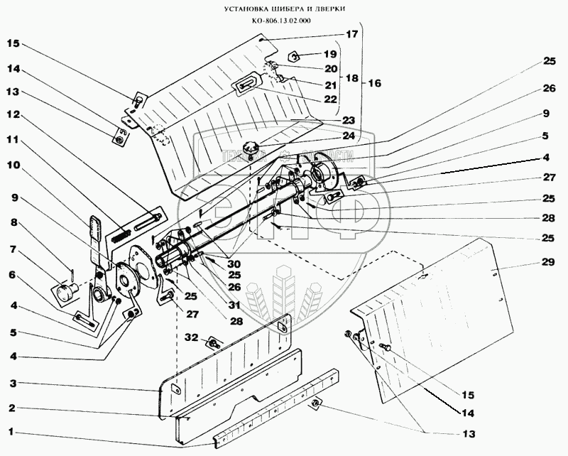 Каталог запасных частей к технике: МЗКМ КО-806. Установка шибера и дверки