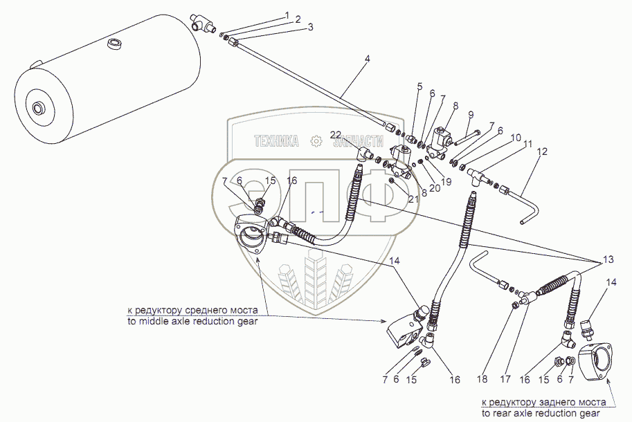 Каталог запасных частей к технике: МЗКТ-69234. Привод управления блокировкой дифференциалов