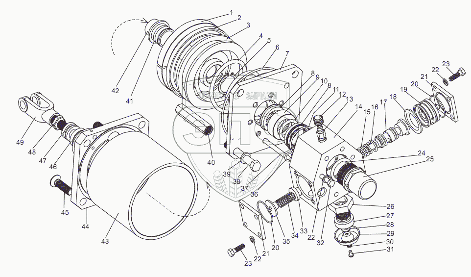 Каталог запасных частей к технике: МЗКТ-69234. Усилитель пневмогидравлический 65151-1609200-10