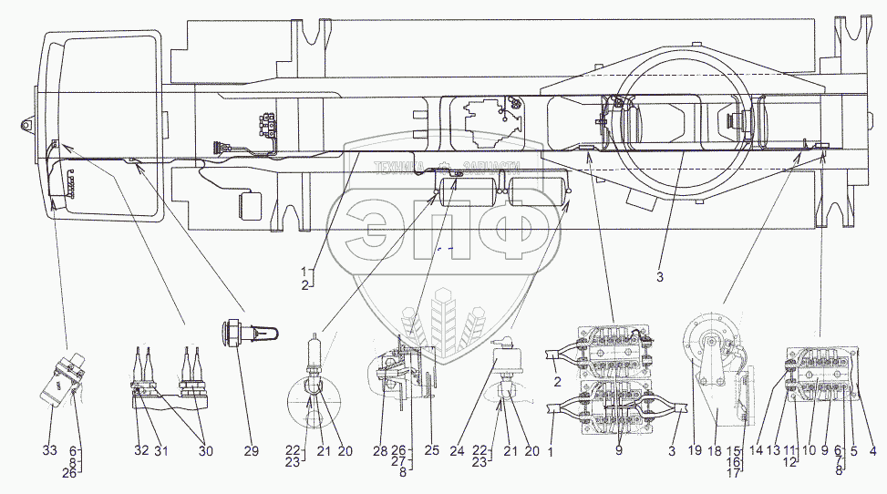 Каталог запасных частей к технике: МЗКТ-69234. Установка электрооборудования на шасси