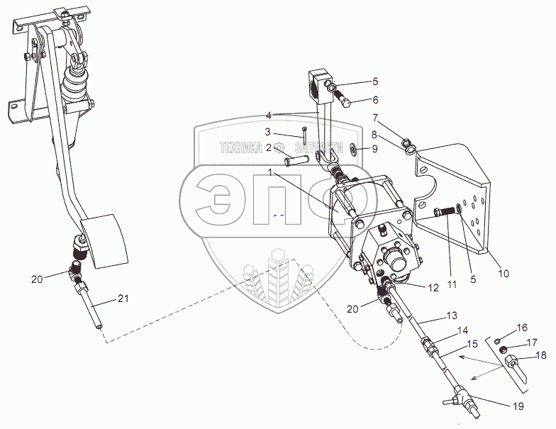 Каталог запасных частей к технике: МЗКТ-69234. Установка привода управления сцеплением