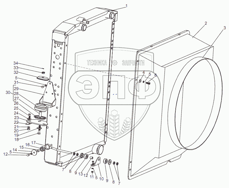 Каталог запасных частей к технике: МЗКТ-69234. Установка радиатора