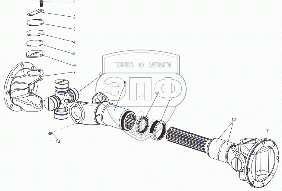 Каталог запасных частей к технике: МЗКТ-69234. Валы карданные 69232-2205010, 79092-2218010