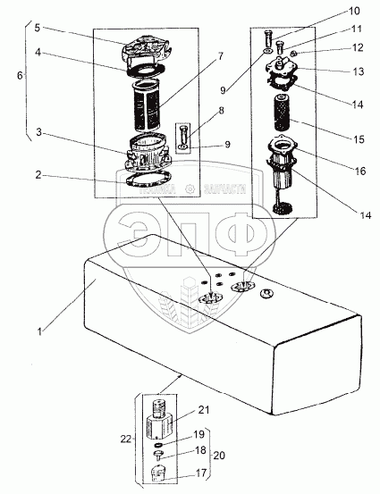 Каталог запасных частей к технике: МЗКТ-8006. Бак топливный 6923-1101010