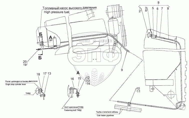 Каталог запасных частей к технике: МЗКТ-8006. Привод останова двигателя