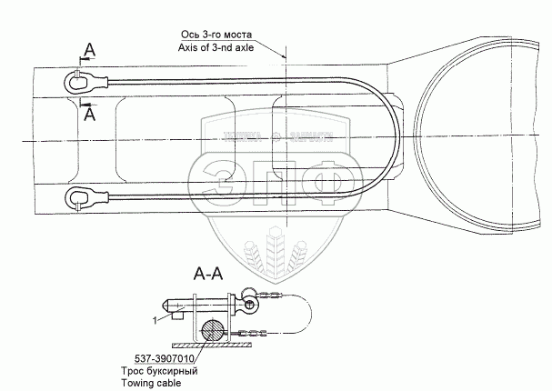 Каталог запасных частей к технике: МЗКТ-8006. Установка буксирного троса
