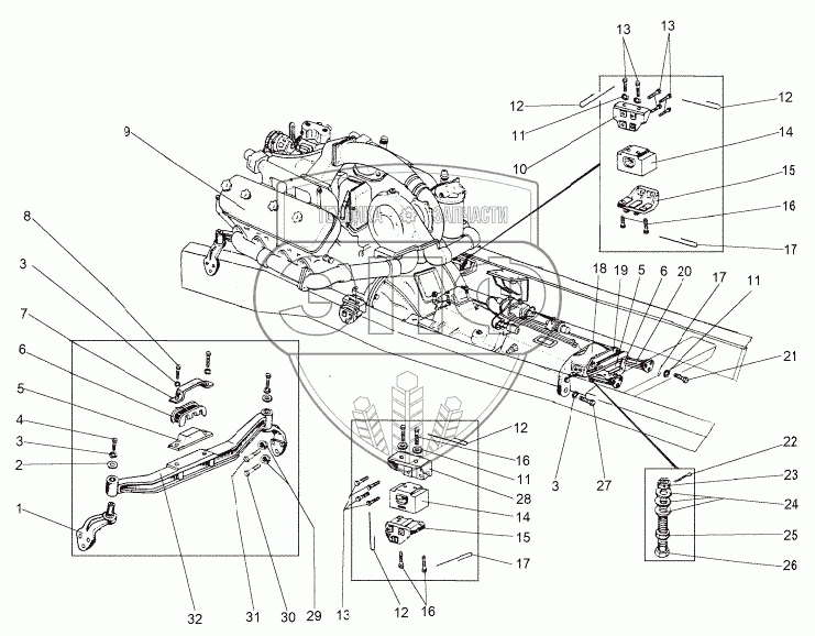 Каталог запасных частей к технике: МЗКТ-8006. Установка двигателя