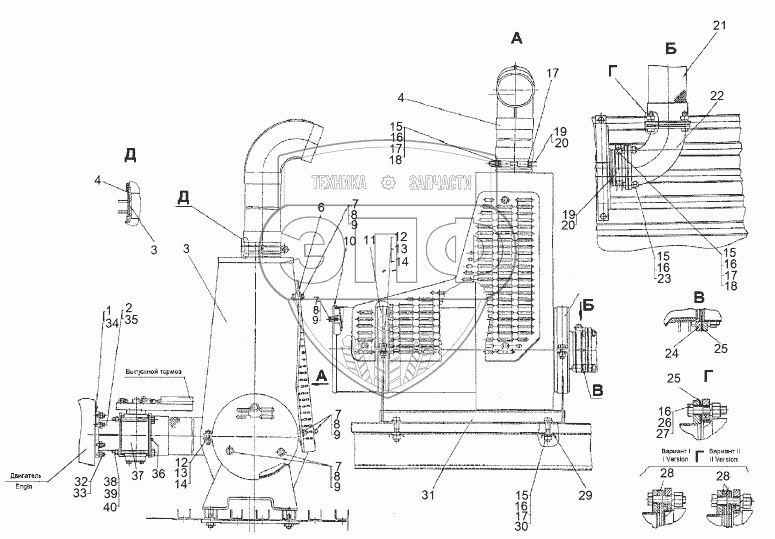Каталог запасных частей к технике: МЗКТ-8006. Установка системы выпуска