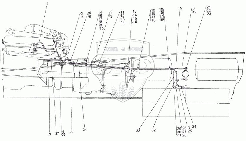 Каталог запасных частей к технике: МЗКТ-8006. Установка топливопроводов