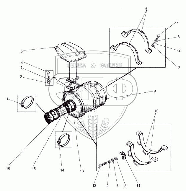 Каталог запасных частей к технике: МЗКТ-8006. Установка воздухоочистителя (238Б-1ТКР9)