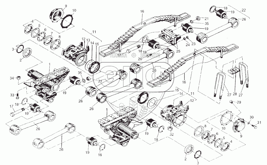 Каталог запасных частей к технике: МЗКТ-80211. Подвеска задняя