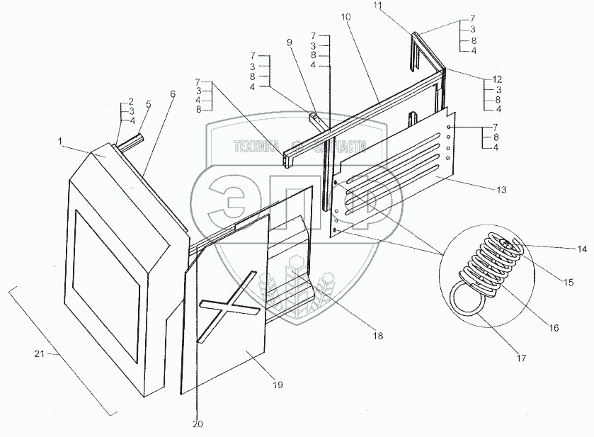 Каталог запасных частей к технике: МЗКТ-80211. Установка ограждения