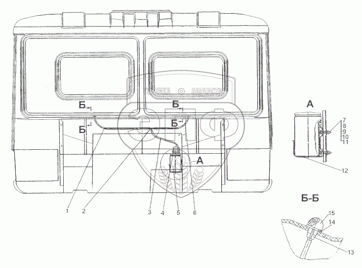 Каталог запасных частей к технике: МЗКТ-80211. Установка омывателя