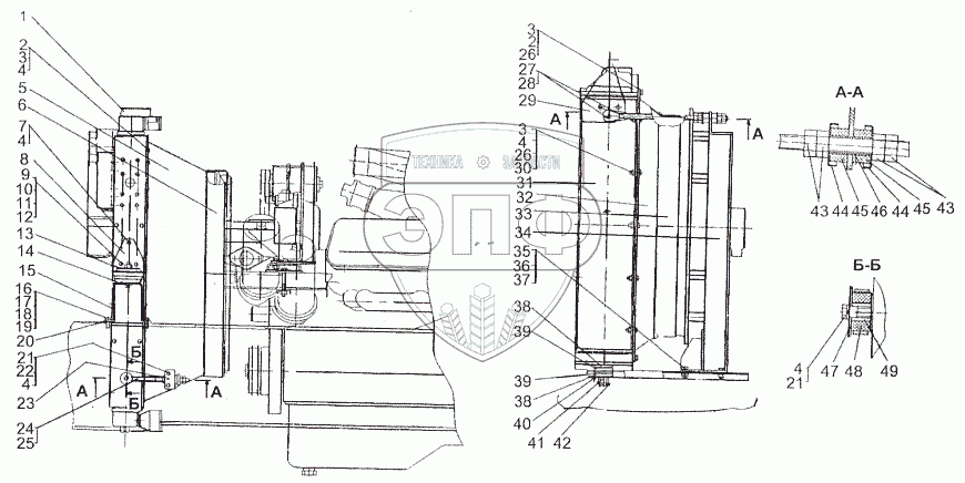 Каталог запасных частей к технике: МЗКТ-80211. Установка радиаторов