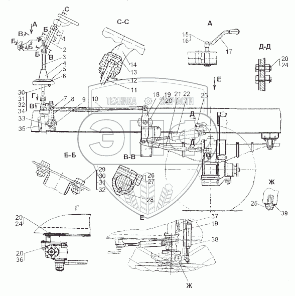 Каталог запасных частей к технике: МЗКТ-80211. Установка рулевого управления