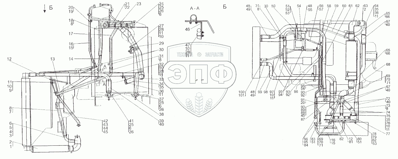 Каталог запасных частей к технике: МЗКТ-80211. Установка трубопроводов системы охлаждения
