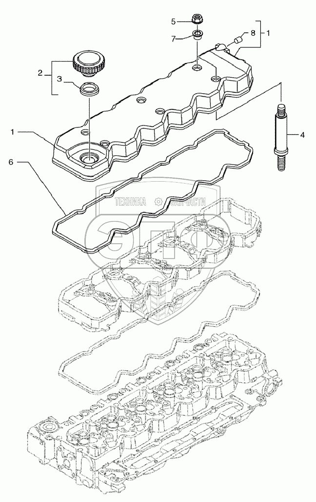 Каталог запасных частей к технике: New Holland Бульдозер D150B TIER-3. CYLINDER HEAD COVERS