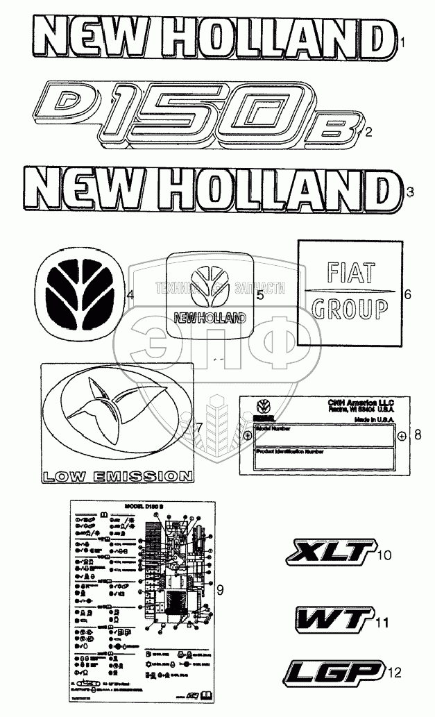 Каталог запасных частей к технике: New Holland Бульдозер D150B TIER-3. DECALS