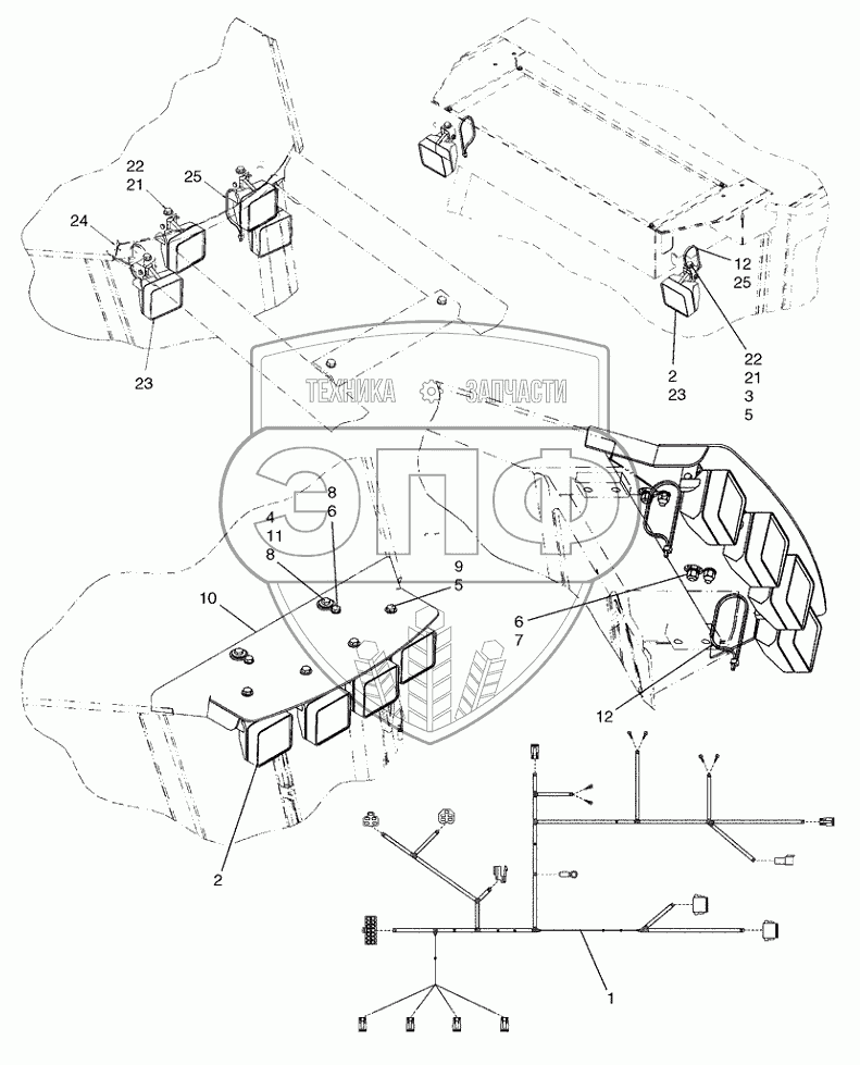 Каталог запасных частей к технике: New Holland Бульдозер D150B TIER-3. HARNESS, LAMP CAB