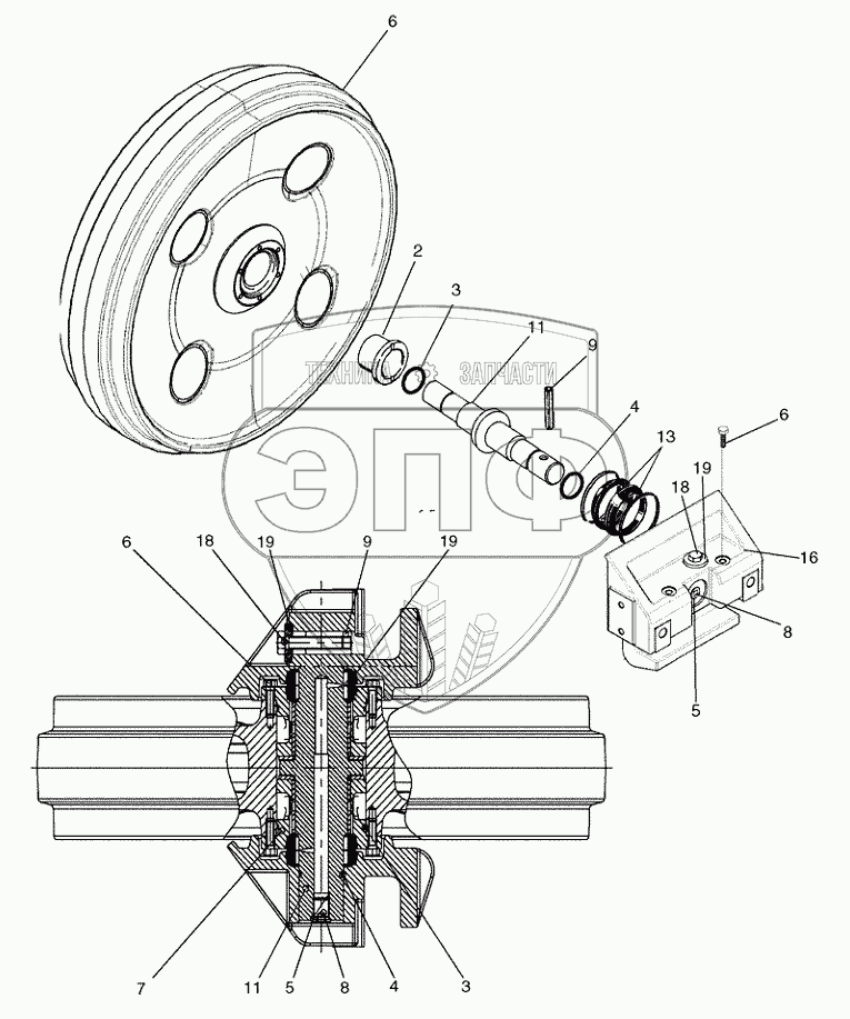 Каталог запасных частей к технике: New Holland Бульдозер D150B TIER-3. TRACK IDLER MOUNTING