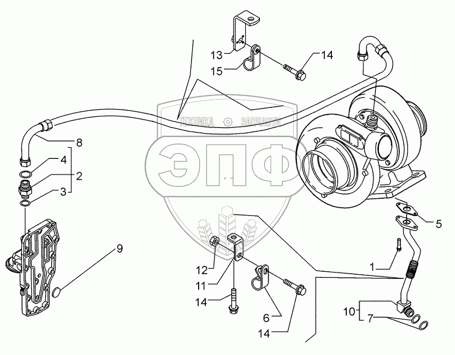 Каталог запасных частей к технике: New Holland Бульдозер D150B TIER-3. TURBOCHARGER DRAIN LINE