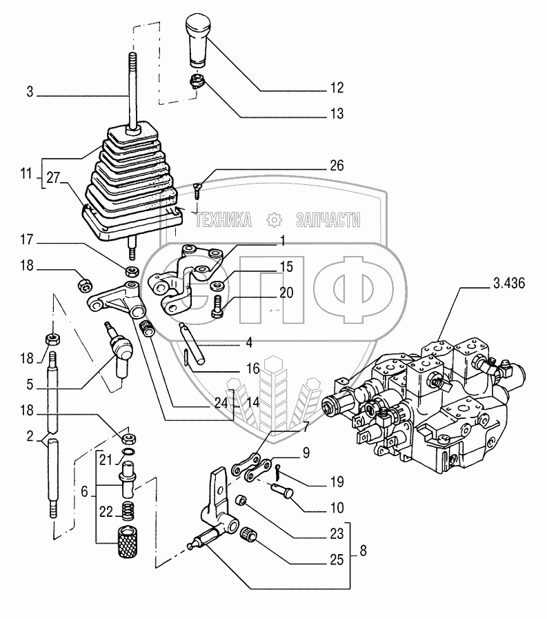 Каталог запасных частей к технике: New Holland Бульдозер D255. CONTROL VALVE LINKAGE