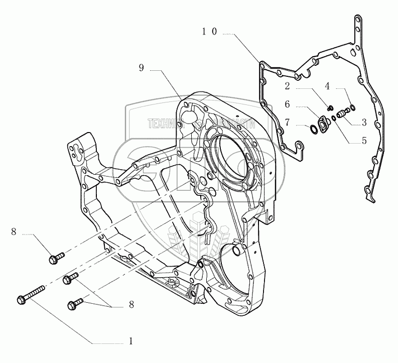 Каталог запасных частей к технике: New Holland Бульдозер D255. CRANKCASE COVERS