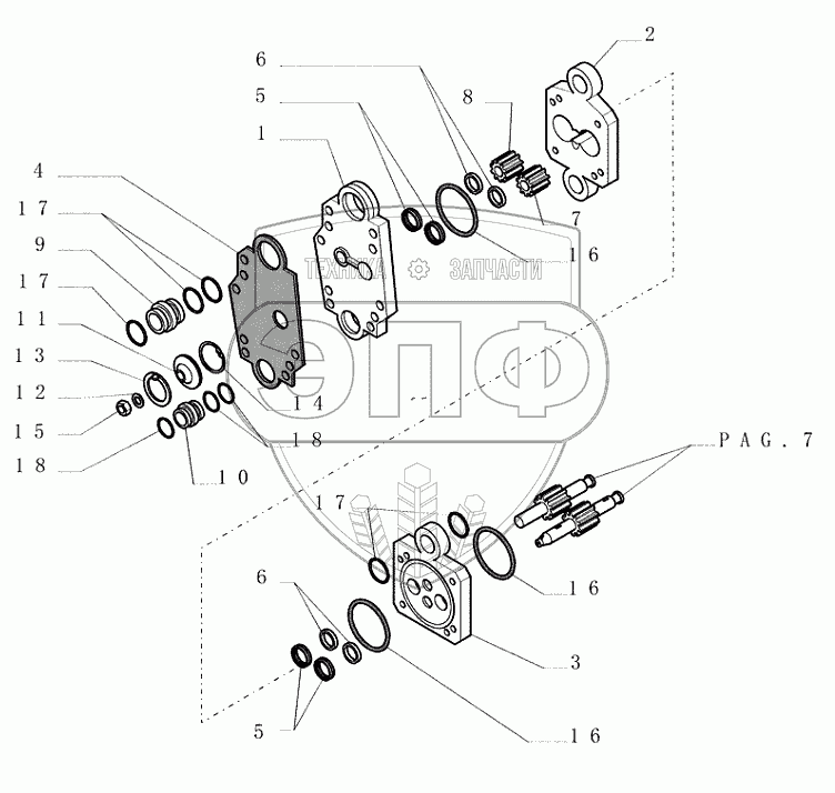 Каталог запасных частей к технике: New Holland Бульдозер D255. TRANSMISSIONCONVERTER PUMPCOMPONENTS