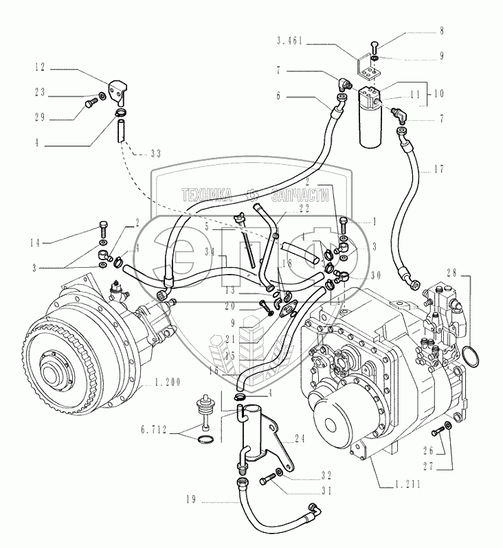 Каталог запасных частей к технике: New Holland Бульдозер D255. TRANSMISSION LUBRIFICATION SYSTEM