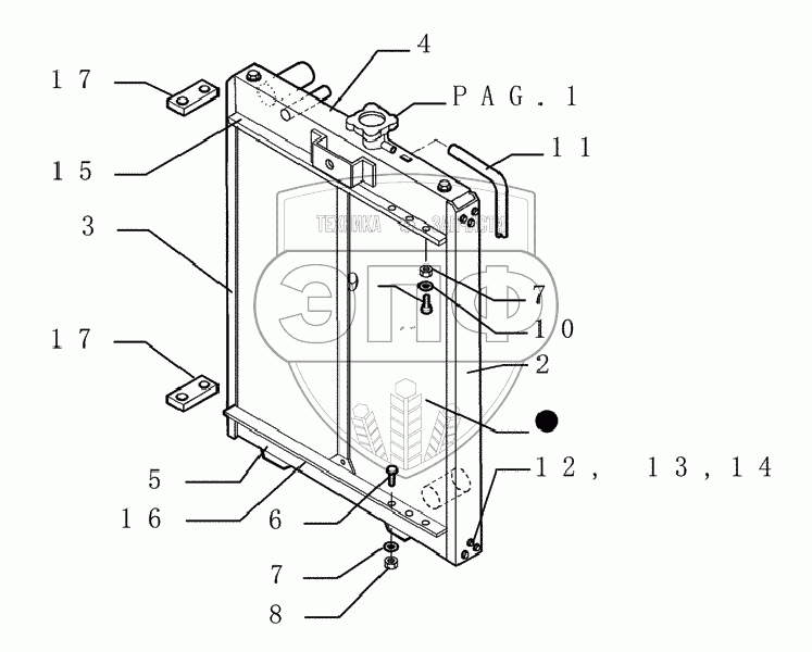 Каталог запасных частей к технике: New Holland Бульдозер D255. WATER RADIATOR COMPONENTS