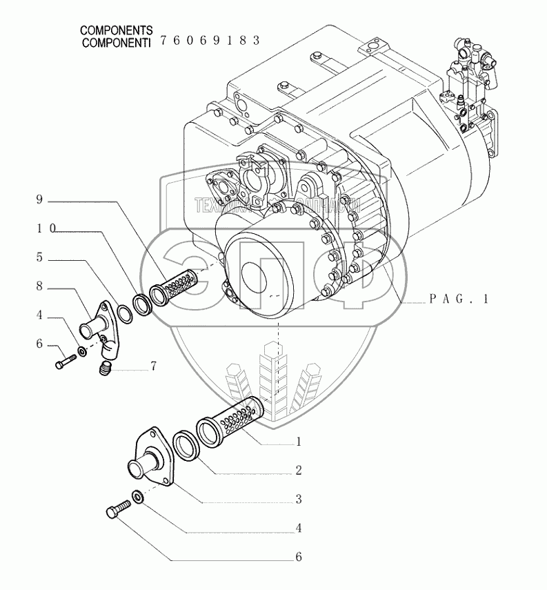 Каталог запасных частей к технике: New Holland Бульдозер D350. 1.211(11) TRANSMISSION PIPING